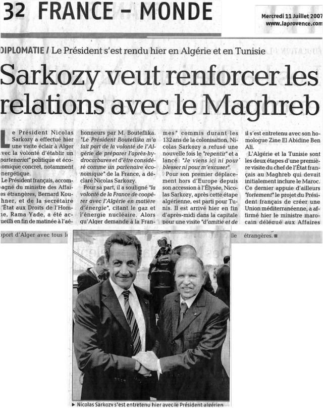 Alors que nous venons à peine, après 45 ans , de célébrer la dramatique journée du 5 juillet 1962 à ORAN , Monsieur Abdelaziz BOUTEFLIKA ose encore nous jouer de sa mandoline avec toujours la même rengaine .