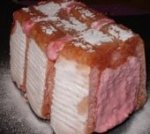 Dans un moule rectangulaire type moule a cake si vous avez un moule Tupperware c’est encore mieux, ( si vous vous servez d’un moule a cake mettre un papier film pour démouler plus facilement) tapissez le fond et les bords avec les biscuits roses trempés dans le kirsch, ne pas en mettre au deux bouts
