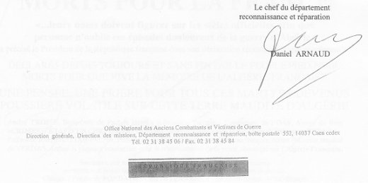 Enlevés à Ténès le 14 janvier 1962 par des terroristes FLN Retrouvés ligotés, ventres ouverts, égorgés et émasculés Ignominie des pouvoirs publics ayant refusé de restituer les corps Fin 2011, soit près d’un demi-siècle après ces crimes de guerre MORTS POUR LA FRANCE</center "...leurs noms doivent figurer sur les stèles officielles afin que André TROISE |
