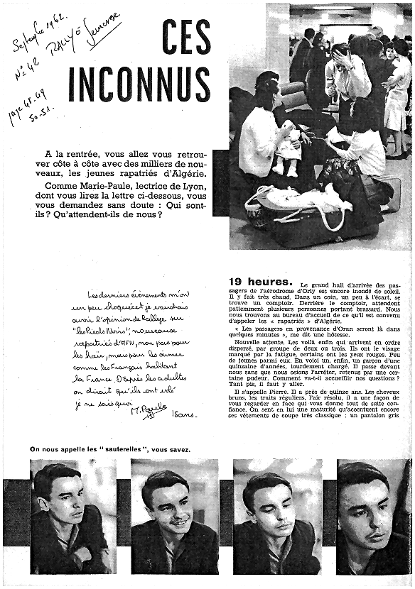 Ce document tiré du N° 42 de septembre 1962 de RALLYE m’a été communiqué par Marc MELIS, authentique SARDE né à Constantine en 1956.