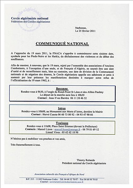 Non à l’officialisation du 19 mars