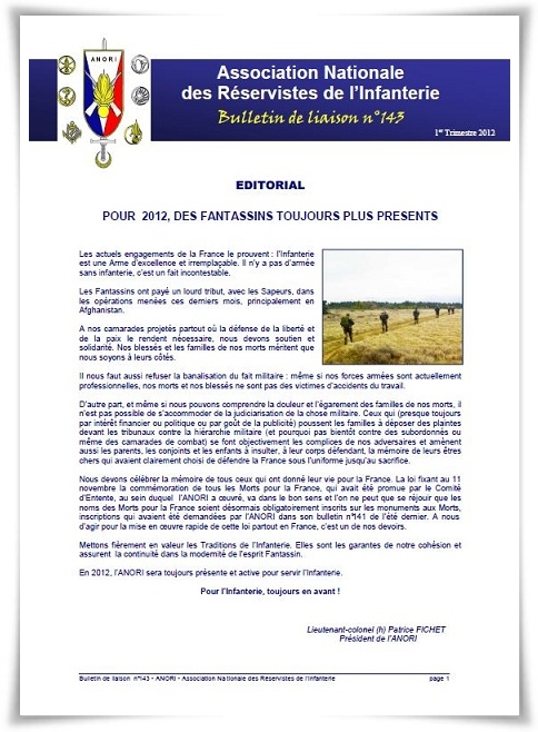 Bulletin 143 de l’ANORI (Association Nationale des Réservistes de l’Infanterie)