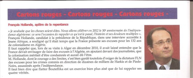 Carton Rouge : François Hollande Samedi 5 novembre 2011, par MORA , popularité : 3% Prix CITRON | 3 | Actualités nationales| Politique| une| Il suffit de lire .... Bonjour le niveau de maturité !! Cliquez sur l’image SVP !
