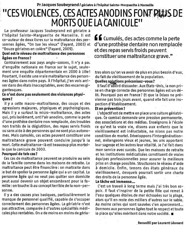 Voila pourquoi il m’est venu à l’idée de mettre en ligne cet article paru hier sur "LA PROVENCE" qui m’a plongé dans une certaine tristesse.