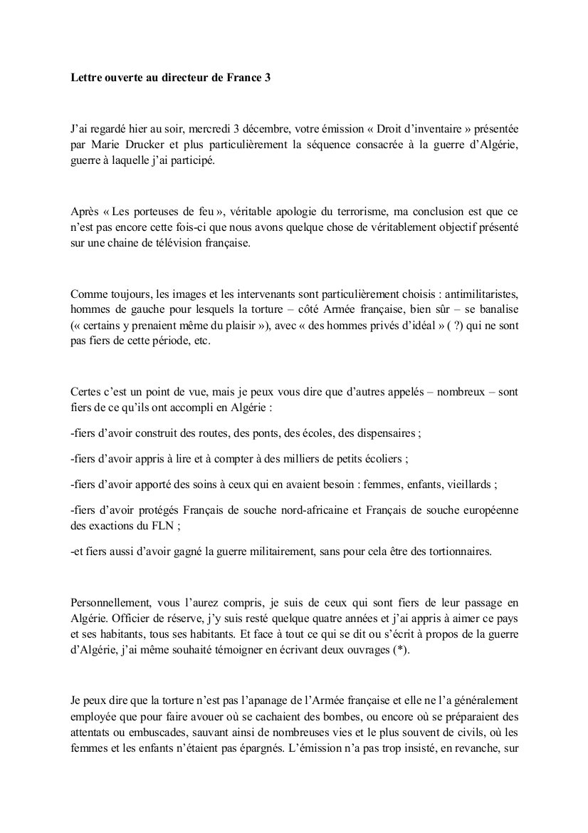Droit d’inventaire FR3 rebelotte ! (mis à jour) Lundi 8 décembre 2008, par MORA , popularité : 3% Communications individuelles | 24 | Histoire| Oppositions| Télévision| transmis par Jean Paul ROBERT Voir aussi les autres courriers en documents joints.