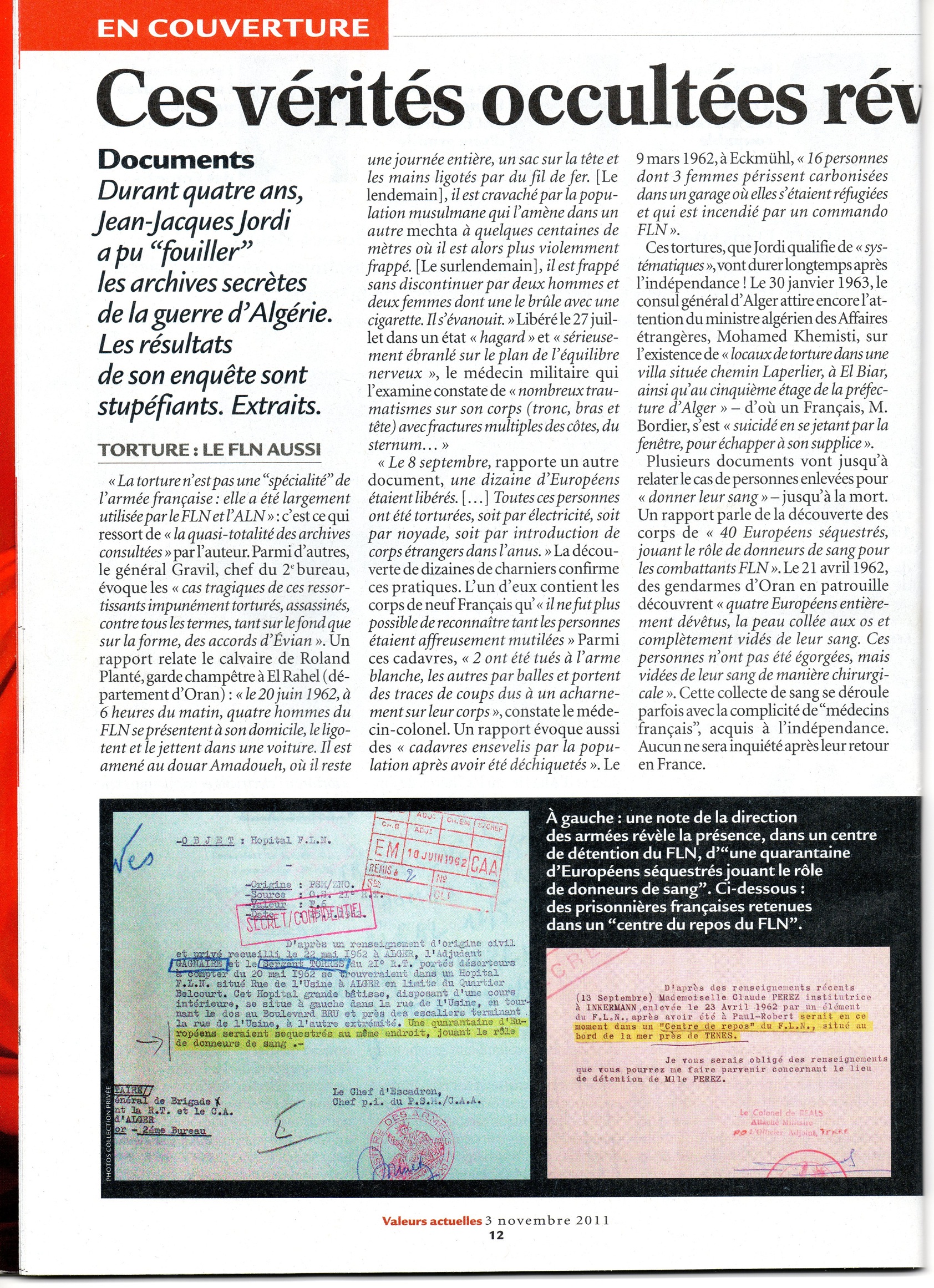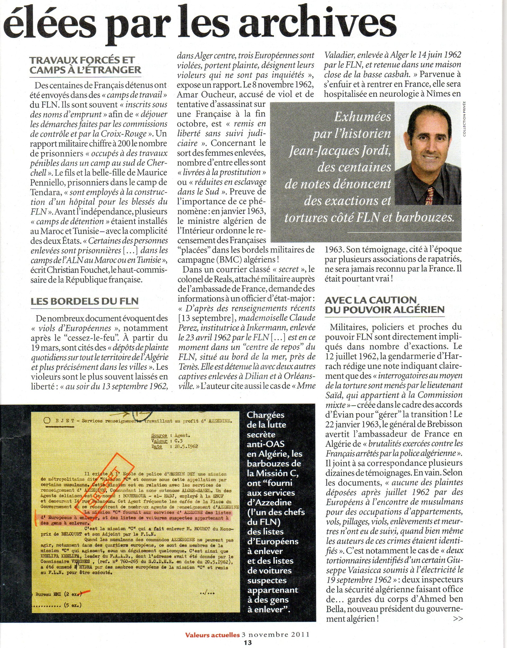 Que Jean-Jacques Jordi soit remercié pour ce livre qui remet les pendules à l’heure, ainsi que le magazine Valeurs Actuelles pour cet article dont il fait sa "une".