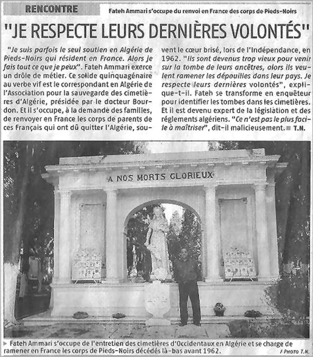 Merci à Fateh Amari de braver tous les dangers pour faire perdurer le souvenir de notre présence là bàs