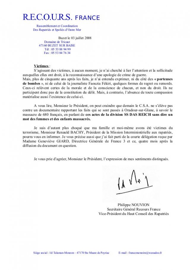 Le RECOURS communique "Porteuses de feu" FR3 CSA Mercredi 16 juillet 2008, par MORA , popularité : 7% Communiqués d’Associations | 42 | Actualités associations| Communiqués de Presse| Histoire| Télévision| Documents reçus et aménagés pour diffusion d’information. Comprend : – Note d’information de Mr NOUVION – Réponse du CSA – Réponse de Mr NOUVION à la lettre du CSA. __espaceur.png__ __espaceur.png__