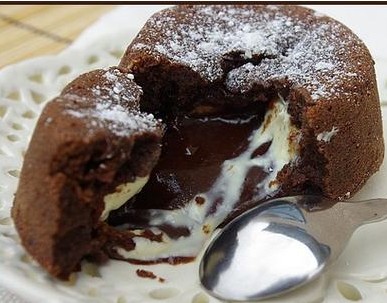Versez la pâte dans des ramequins beurrés et ajoutez un morceaux de nougat au centre de chaque gâteau.