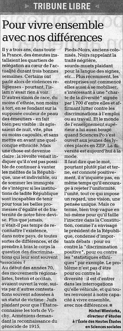 Vivre ensemble : oui, mais avec qui ? Lundi 20 octobre 2008, par Jean Claude THIODET ✞ , popularité : 23% Tribunes | 6 | La Presse| Société|