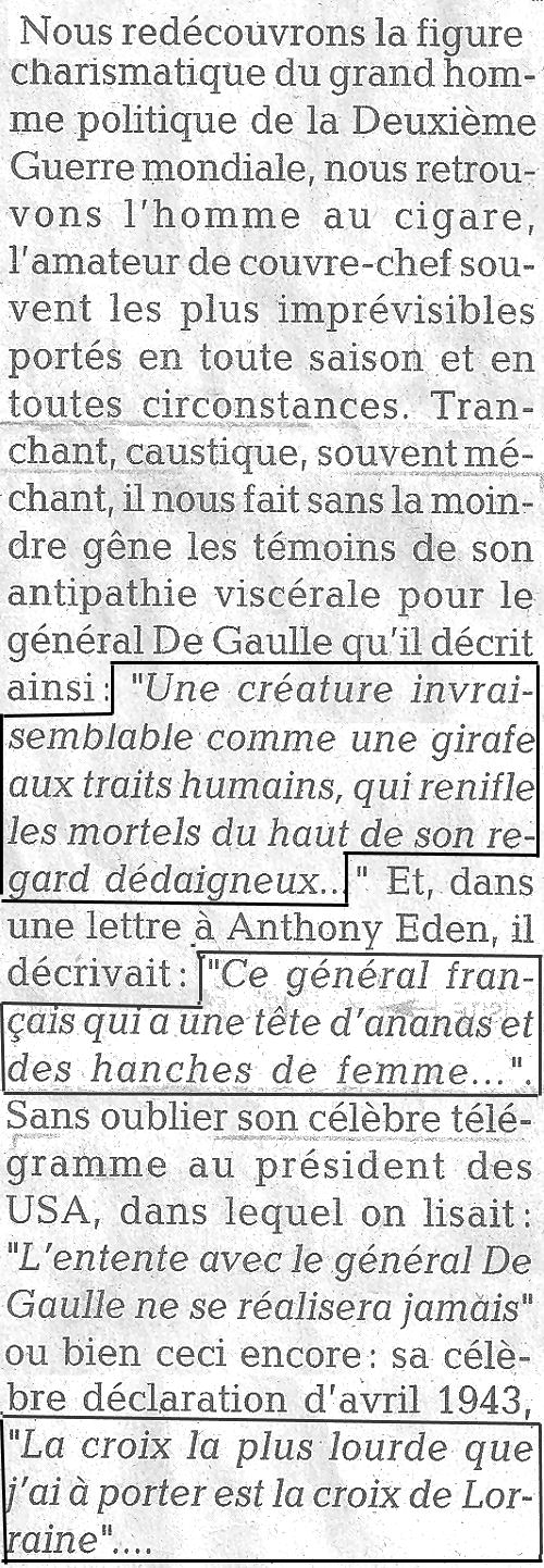 Winston CHURCHILL disait de C. De GAULLE !!!