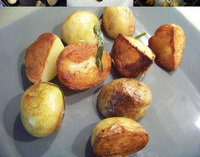 600g de pommes de terre nouvelles, 5 à 6 feuilles de citronnier ou de bergamotier ou encore de kombava, sel, huile d’arachide