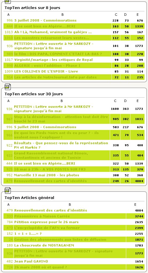 Comme tous les 15 jours.. les chiffres clés du Journal, TOP TEN etc.. !