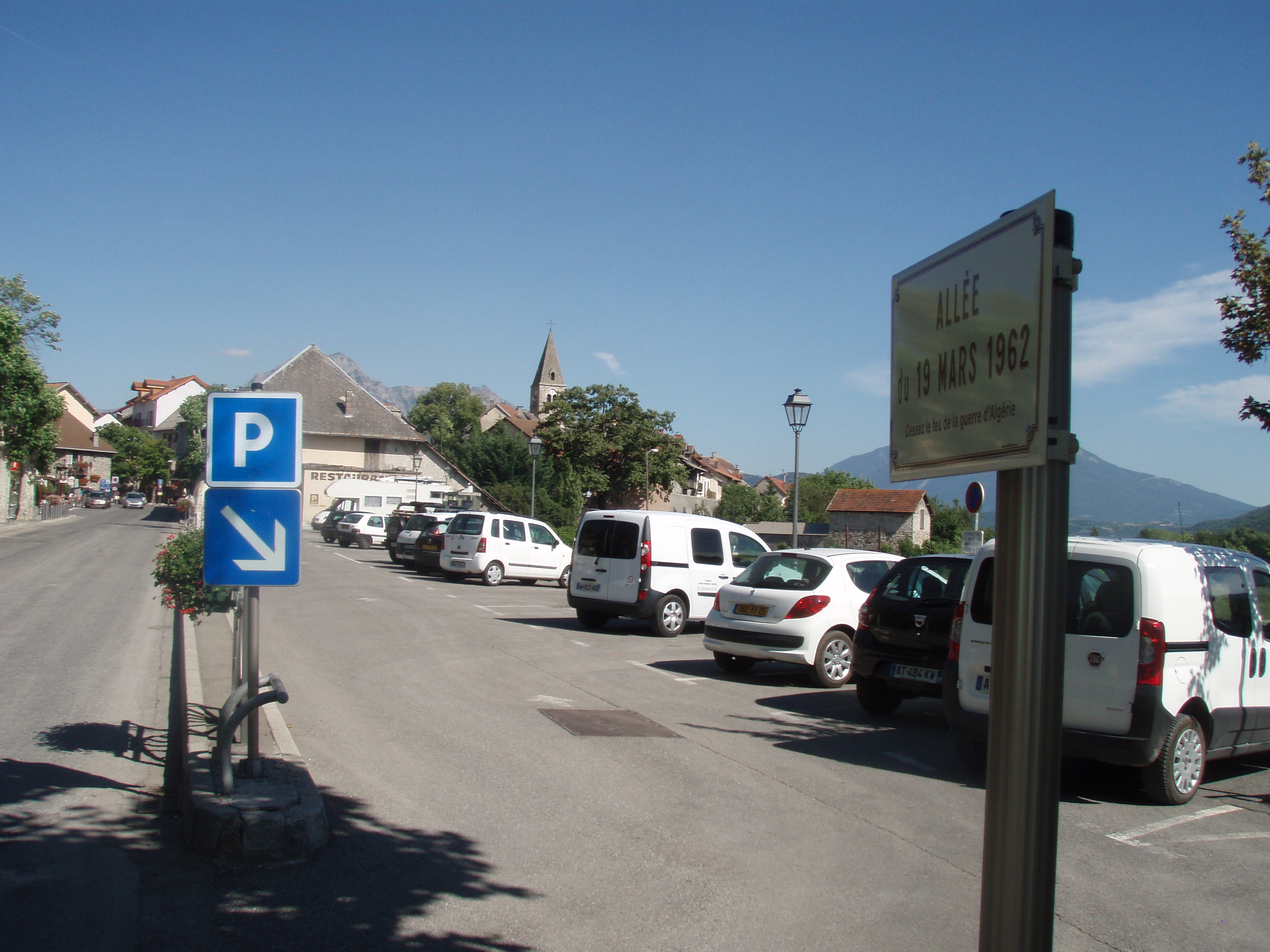 Car il ne s’agit pas d’une rue ou d’une place digne de ce nom ... une rue ou une place qui aurait pu porter le nom d’un personnage méritant ou d’un site évocateur de beauté ou de majesté, comme il y en a tant en milieu montagnard ... mais d’un vulgaire parking à bagnoles et à poubelles baptisé pompeusement "allées" pour la circonstance ... en bordure d’une voie antérieurement nommée ... rue des Martyrs !!!