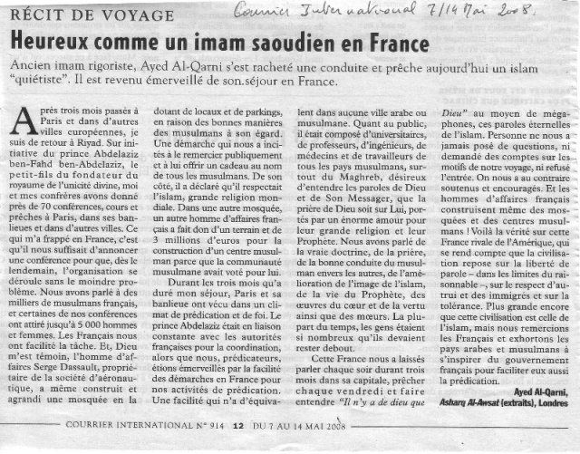 FRANCE terre d’accueil Mercredi 21 mai 2008, par MORA , popularité : 3% National | 5 | Islam| Société| Savoureux !!