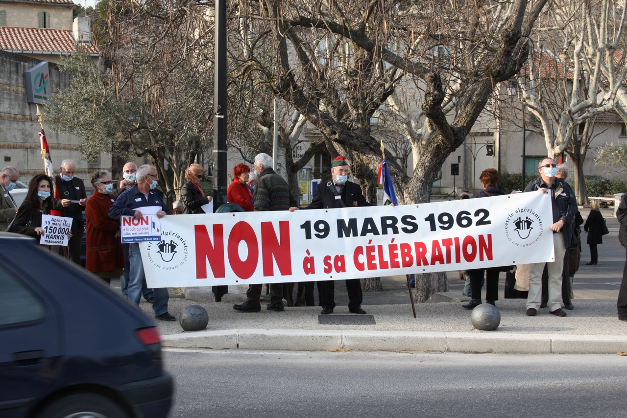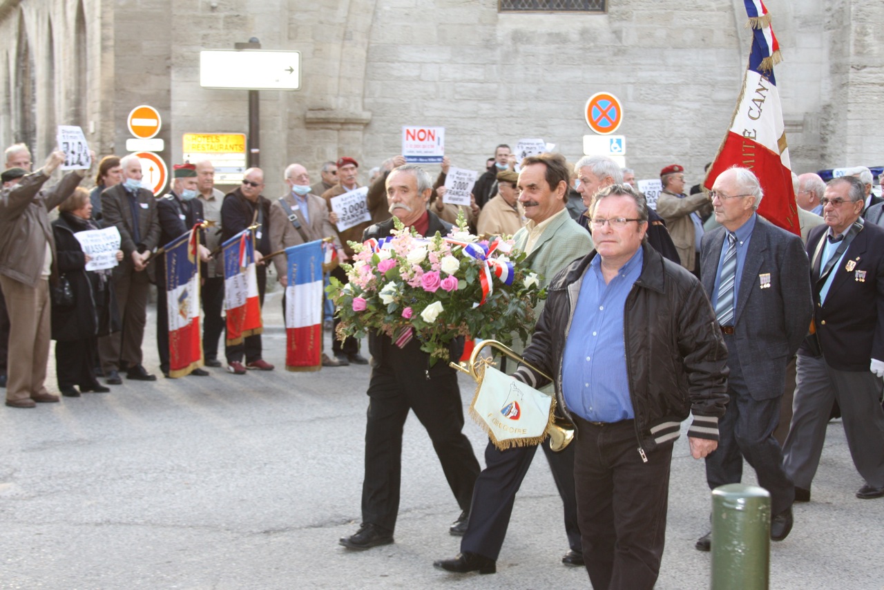 Le 19, alors que notre amis Jean Claude PRIETO avait pu contacter le maire de Villeneuve les Avignon, Jean Marc ROUBAUD, député UMP (dont les parents médecin et pharmacien étaient originaires de Bab el Oued ) pour attirer son attention sur l’incongruité de sa participation éventuelle à la manifestation de la FNACA devant le monument aux morts de sa ville, une délégation importante de PN du Gard et du Vaucluse attendait le défilé organisé par les membres de cette association.
