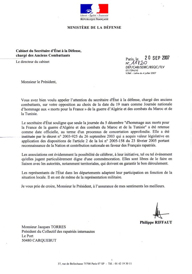 Le CRI communique au sujet du 19 mars Mercredi 26 septembre 2007, par MORA , popularité : 3% Communiqués d’Associations | Reçu de Jacques TORRES. Cliquez sur l’image pour la grandir.
