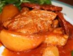 Servir avec du riz ou des pâtes fraîches ou des pommes de terre ajoutées en fin de cuisson dans le jus de viande allonger un peu la sauce avec de l’eau dans laquelle on a mis un 1/2 cube de bouillon de volaille