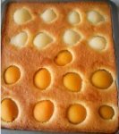 Dessus on ajoute au choix des fruits au sirop : pêches, poires, abricots, ananas, ou alors du sucre vanillé ou de la cassonnade.