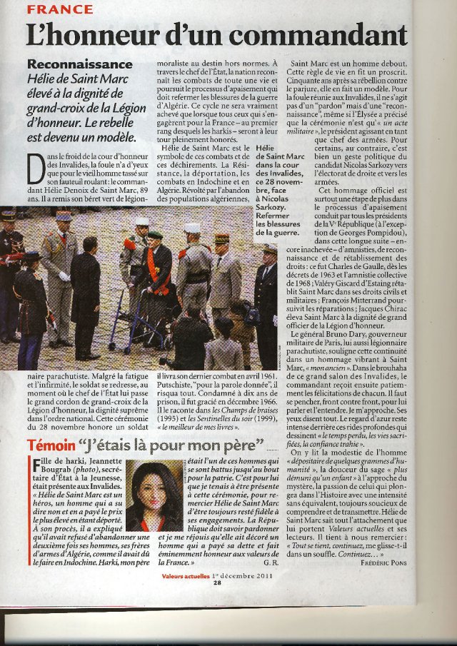 "Valeurs Actuelles" honore le commandant Hélie Denoix de Saint Marc