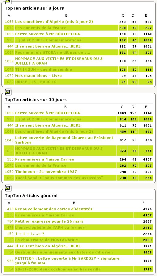 Comme tous les 15 jours.. les chiffres clés du Journal, TOP TEN etc.. !