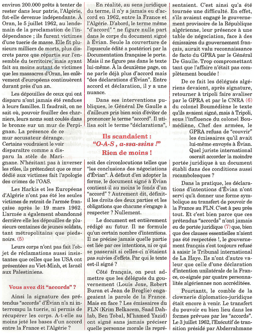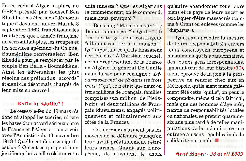 19 mars 1962 : Un faux anniversaire pour un faux armistice Vendredi 22 janvier 2010, par Jean Claude THIODET ✞ , popularité : 5% Non au 19 mars ! | 6 | 19 mars 1962| Guerre d’Algérie| Histoire| voir le site des SAS