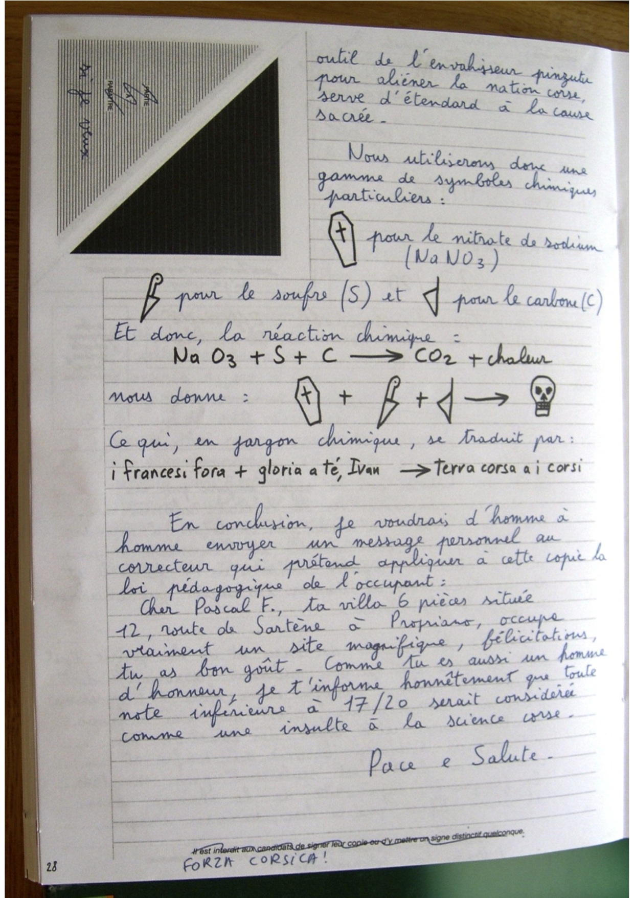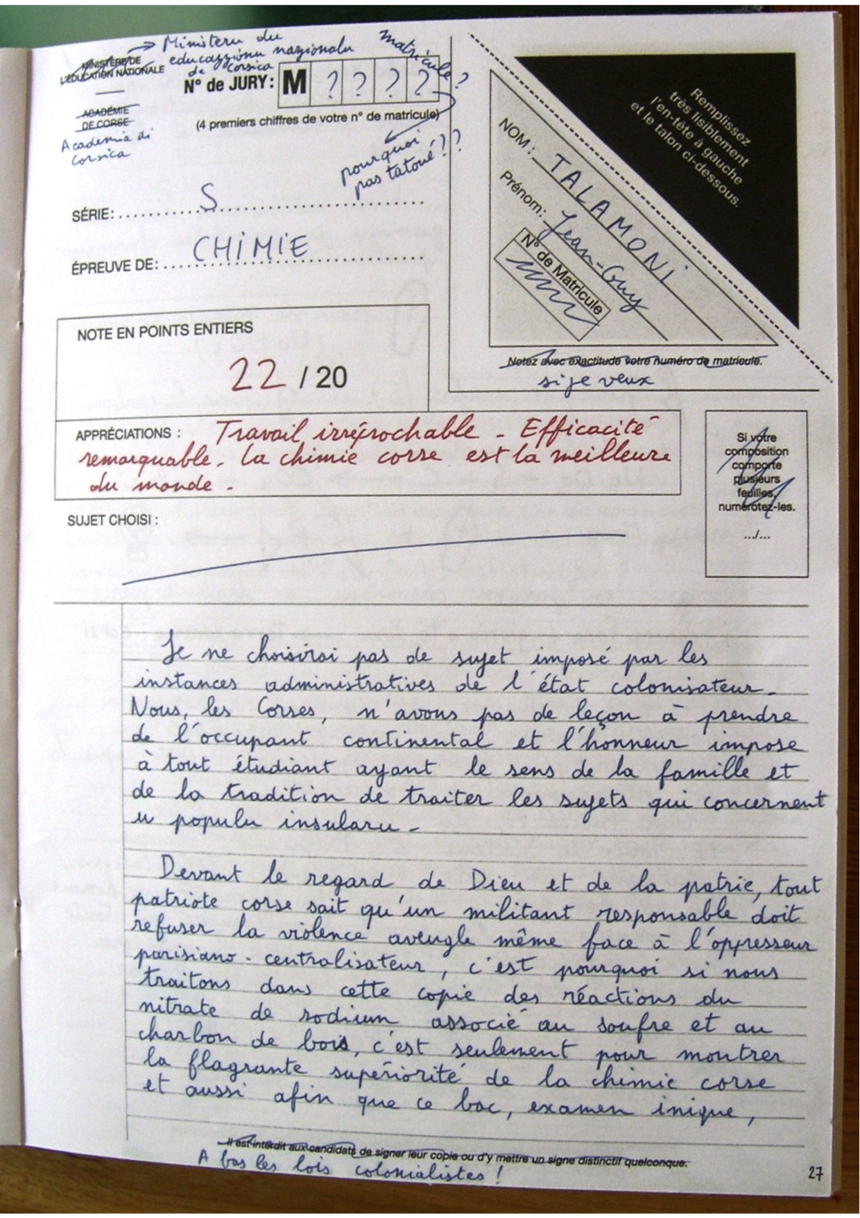 NB : L’authenticité de ces copies n’est pas garantie ... seul l’humour Corse est à prendre en considération. En tout état de cause le webmaster est prié de ne jamais donner mon adresse ... Merci.