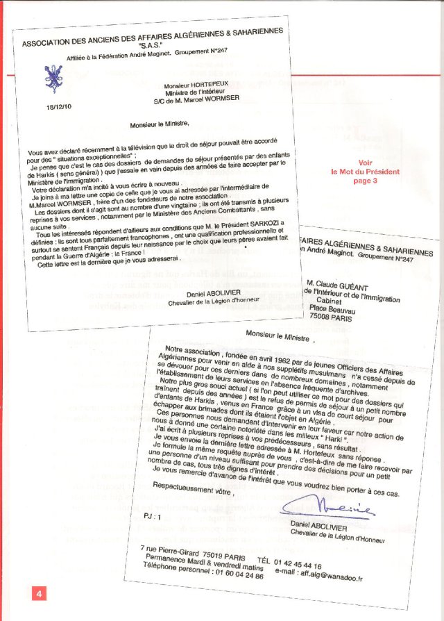 Je reproduis, à la page suivante, mes lettres, restées sans réponse, à M. Hortefeux, ancien ministre de l’Immigration et Claude Guéant, l’un de ses successeurs.