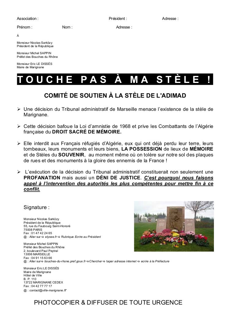 COMITÉ DE SOUTIEN À LA STÈLE DE L’ADIMAD + signatures (mis à jour 2)