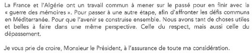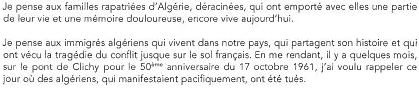 Cet axe majeur et directeur de votre programme de mandature s’inscrit également dans le respect du principe constitutionnel « d’égalité des citoyens devant les charges publiques et de solidarité dans les calamités nationales », créant ainsi l’espoir que ce dernier ne sera plus bafoué comme il l’est depuis 50 ans lorsqu’il s’agit des dépossessions massives d’Algérie et d’outre mer des années cinquante et soixante du XXe siècle( leur indemnisation n’ayant été en moyenne et en réalité économique jusqu’à présent que de 2.35% des pertes).