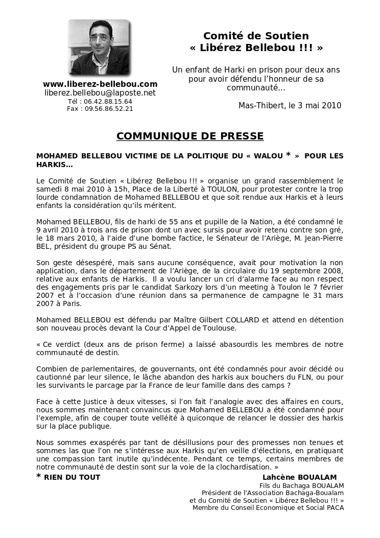 Des nouvelles de M. Bellebou Jeudi 6 mai 2010, par Allezou...bIda ✞ , popularité : 5% Bachaga BOUALAM | Actualités associations| Harkis| Reçu par mail