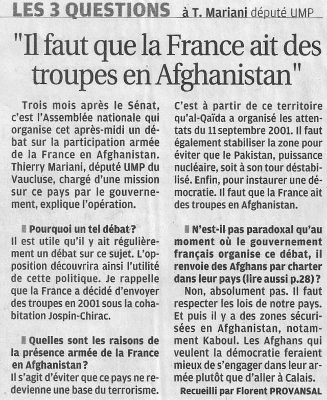 Faut-il rester en Afghanistan et pourquoi ? Vendredi 18 décembre 2009, par Jean Claude THIODET ✞ , popularité : 5% Afghanistan | 1 | Terrorisme|