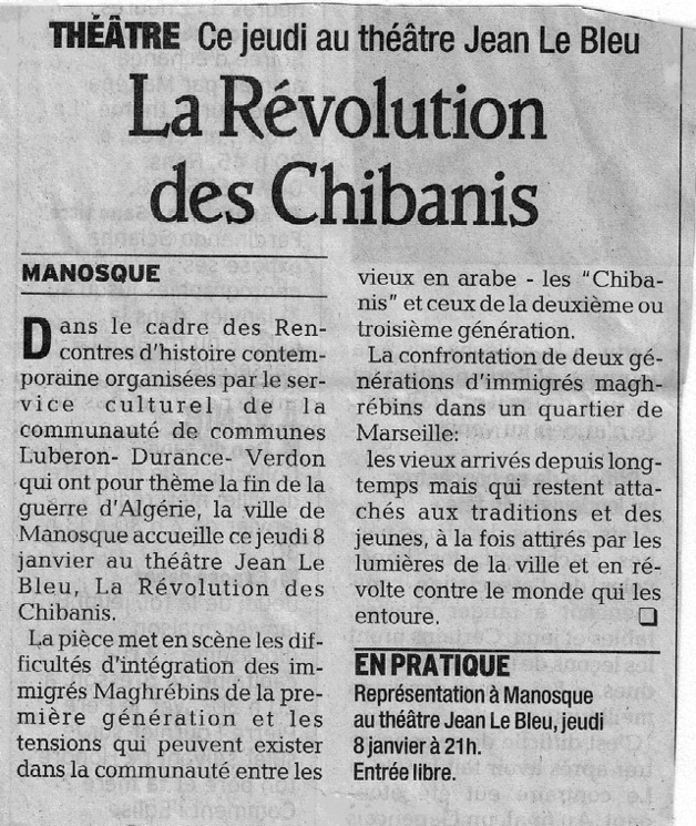 Contre toute attente, voilà que le "Chibani" fait maintenant du théâtre itinérant pour le compte des Communautés de Communes, aux frais du contribuable ...