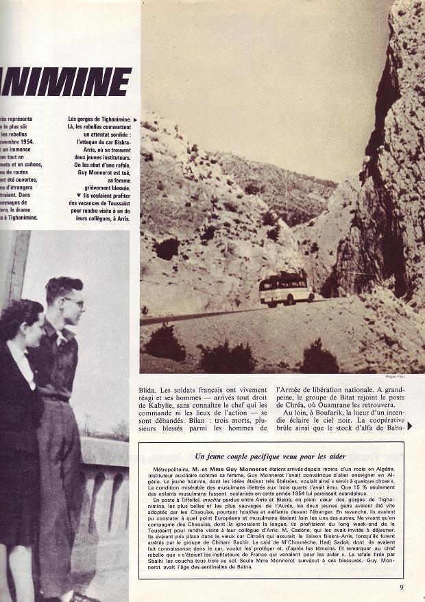C’est bien cette nuit-là que Guy Monnerot, instituteur à Ghassira, fut assassiné à Thighanimine. Sa femme est laissée pour morte sur le bord de la route. Ils ne furent malheureusement pas les seules victimes des fellaghas du FLN , cette nuit-là et jusque après l’indépendance du pays. Mais c’est bien le F.L.N qui a fait tuer Guy Monnerot.