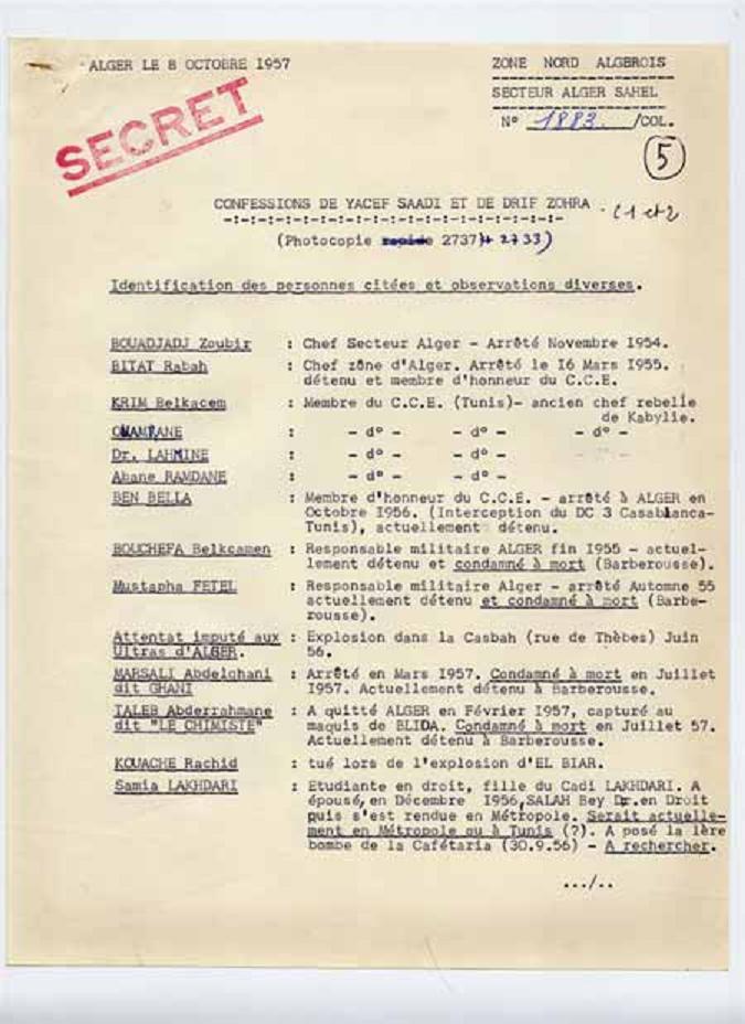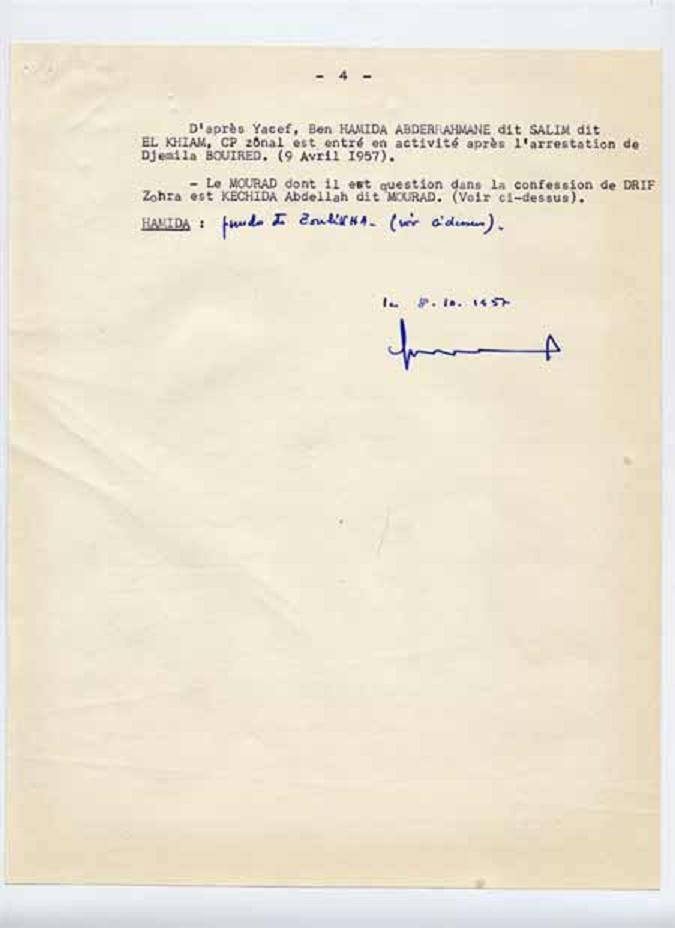 Les confessions - suite Vendredi 27 avril 2007, par Danièle LOPEZ , popularité : 3% 1957 - Le tournant historique | Procès verbal d’audition du 10 octobre 1957 P.V d’audition du 10/10/1957 Confession du 8 octobre 1957 confessions-suite page 1 confessions-suite page 2 confessions-suite page 3 confessions-suite dernière page