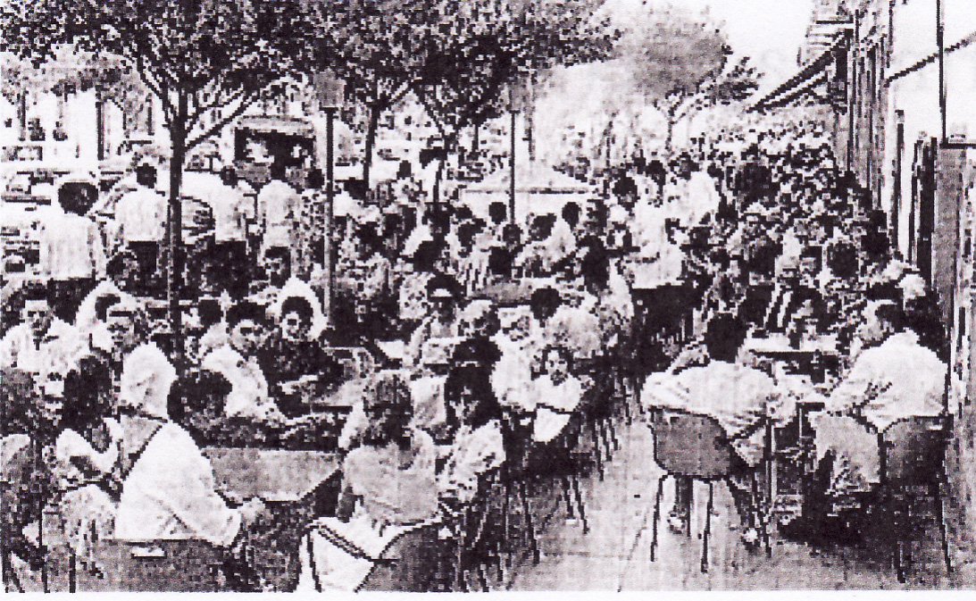 C’est un spectacle hautement esthétique pour un amateur d’art que ces centaines d’exécutants interprétant cette symphonie en mâchoires majeures. Chaque table joue sa partition sous la baguette du chef-rôtisseur debout devant son fourneau.