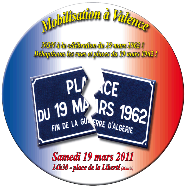 MOBILISATION à VALENCE contre la célébration du 19 mars 1962 !