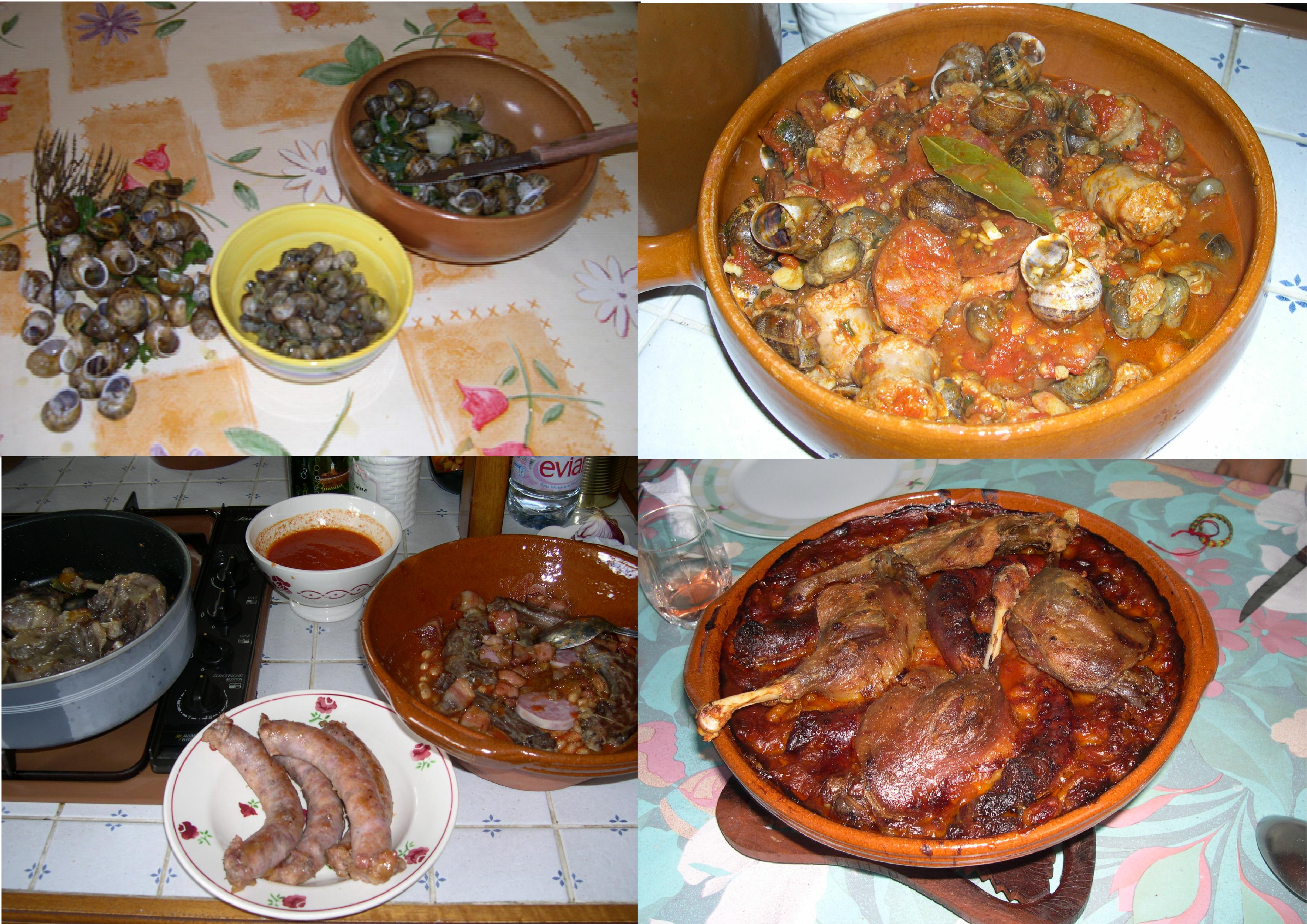 Du rosé pour les colimaçons et du rouge de Sainte Croix pour les confits d’oie, Sainte Croix est un petit village des coteaux du Tarn et ses vins ont réussi à faire déglutir le tout, je dis bien le tout car les enfants, gourmets et gourmands de Paris étaient passé chez nous afin de terminer leurs Vacances.