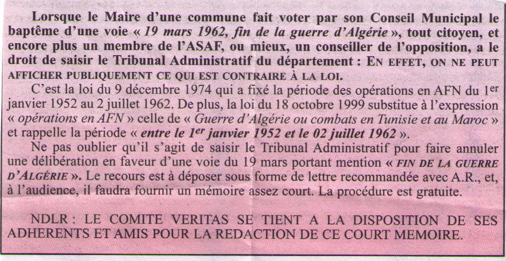 Outil utile contre les rues du 19 mars 1962 Mardi 16 septembre 2008, par MORA , popularité : 5% Actions et projets | 2 | 19 mars 1962| Actions collectives| Pour info à destination de ceux qui souhaitent entreprendre une action sur certaines rues du 19 mars 1962.