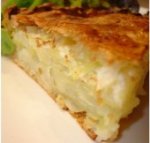 Eplucher et découper les pommes de terre en fines lamelles. Eplucher et émincer l’oignon, mélanger avec les pommes de terre, salez, poivrer.