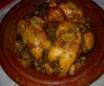 Servir le poulet doré avec la sauce, décoré d’olives et de lamelles de citron confit.