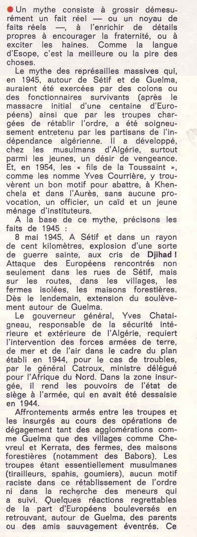 Précisions sur les faits tels qu’ils se sont passés par un protagoniste - et non le moindre - des évenements de Sétif,