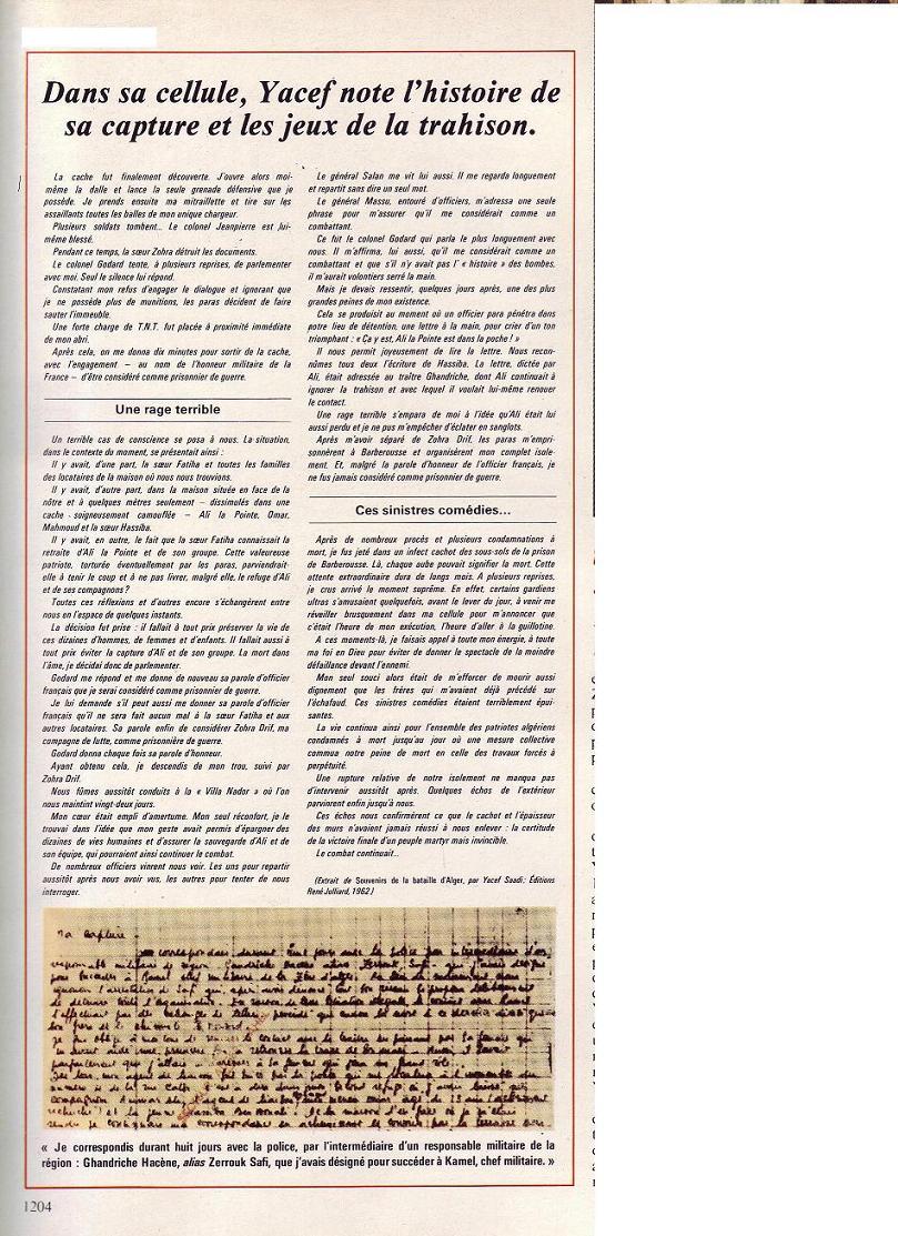 " Souvenirs de la Bataille d’ Alger" par Y.Sâadi - extrait Vendredi 27 avril 2007, par Danièle LOPEZ , popularité : 4% 1957 - Le tournant historique | extrait du livre de Y. Sâadi