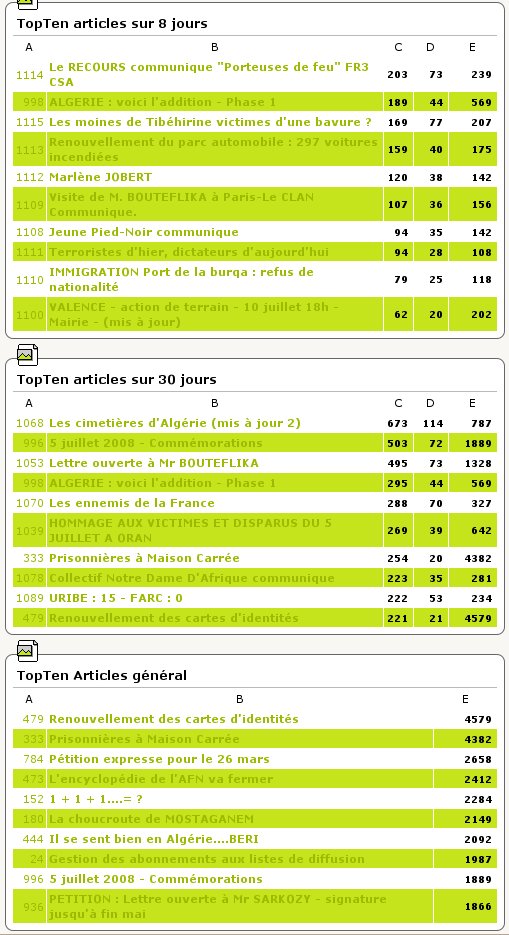 Comme tous les 15 jours ou presque .. les chiffres clés du Journal, TOP TEN etc.. !