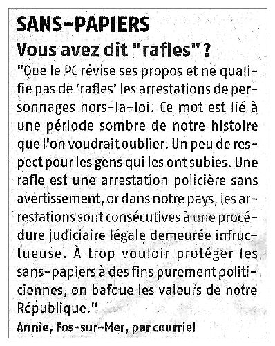 On ne peut que regretter de ne pas avoir l’adresse email d’Annie qui a réagi dans le courrier des lecteurs de "LA PROVENCE" LE 16 août. nous l’aurions remerciée et encouragée à se joindre à nous.