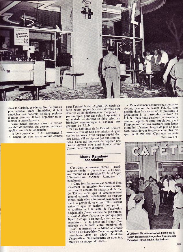 Ce jour-là à 17 heures 30 trois bombes éclatent simultanément . Deux d’entre elles seront meurtrières. Le Milk Bar et La Cafétéria. Celle du Mauretania n’explosera pas dans le hall d’entrée pour cause de mauvais réglage.